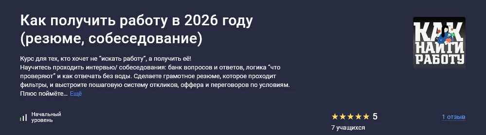 Это практический курс про поиск работы в 2026 году: от понимания рынка и конкуренции — до оффера, переговоров и проверки работодателя.