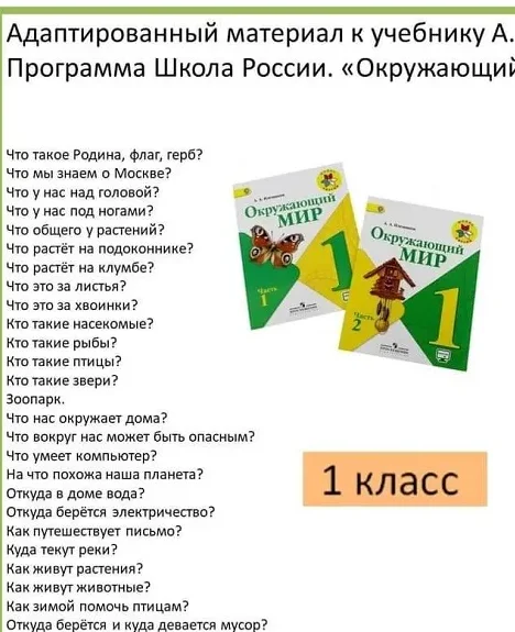 Скачать [Виктория Пенькова] Адаптированный материал к учебнику Окружающий мир Плешаков. 1 класс (2024)