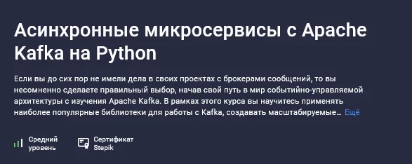 Этот курс не сделает вас сразу гуру Kafka, но позволит упростить порог вхождения в тему, даст идеи для дальнейшего развития как разработчика в этой области.
