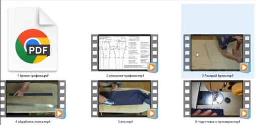 Так же в видеоматериале есть показ построения конструкции на бумаге и раскрой на ткани, подготовка брюк к примерке, самой примерки пока нет.