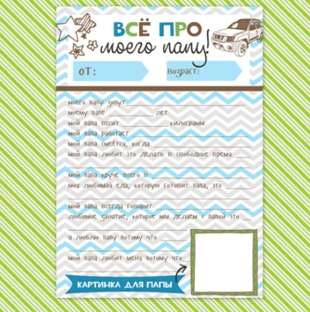 Кто знает, что у ребенка в голове? Позвольте ему составить свой рассказ о папе по направляющим вопросам.