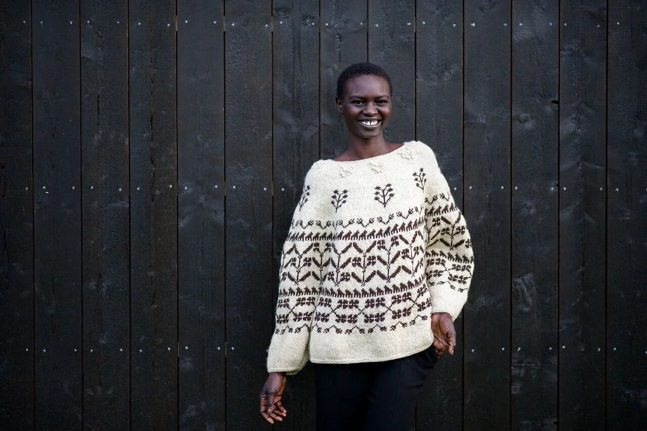 Obba sweater - это жаккардовый свитер, вязаный сверху вниз, без швов и по схеме.