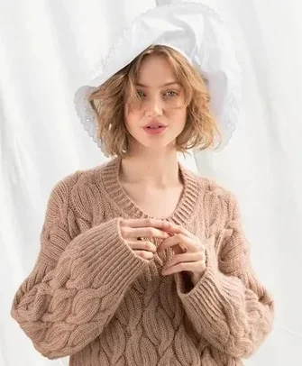 Скачать [Вяжи.ру] Женский пуловер с косами глубоким вырезом и японским плечом Haley (2024)
