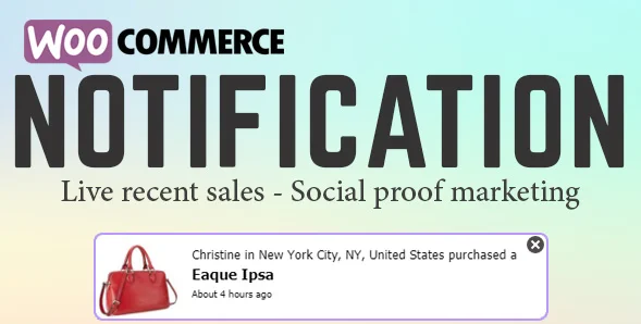 WooCommerce Notification - отображает "последние заказы" в вашем интернет-магазине. Создает эффект срочности и "напряженности" - показывает потенциальным клиентам, что товар, который они присмотрели - только что кто-то купил.