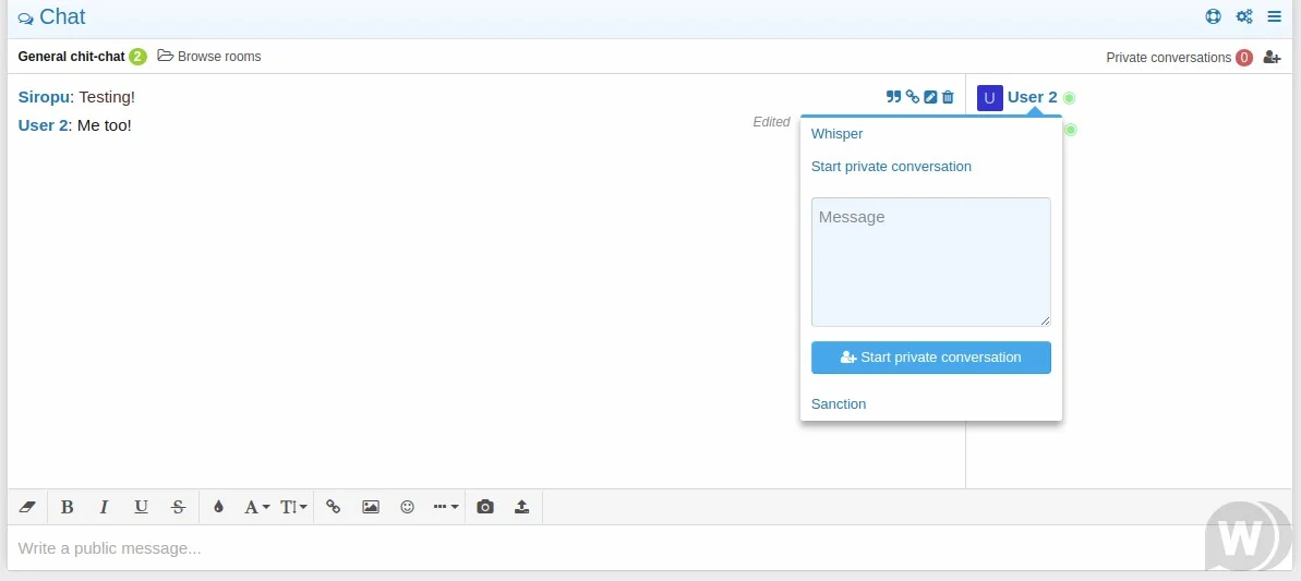 Чат использует встроенный расширенный редактор текста XenForo, и Вы можете отключить отдельные кнопки/BB-коды.
