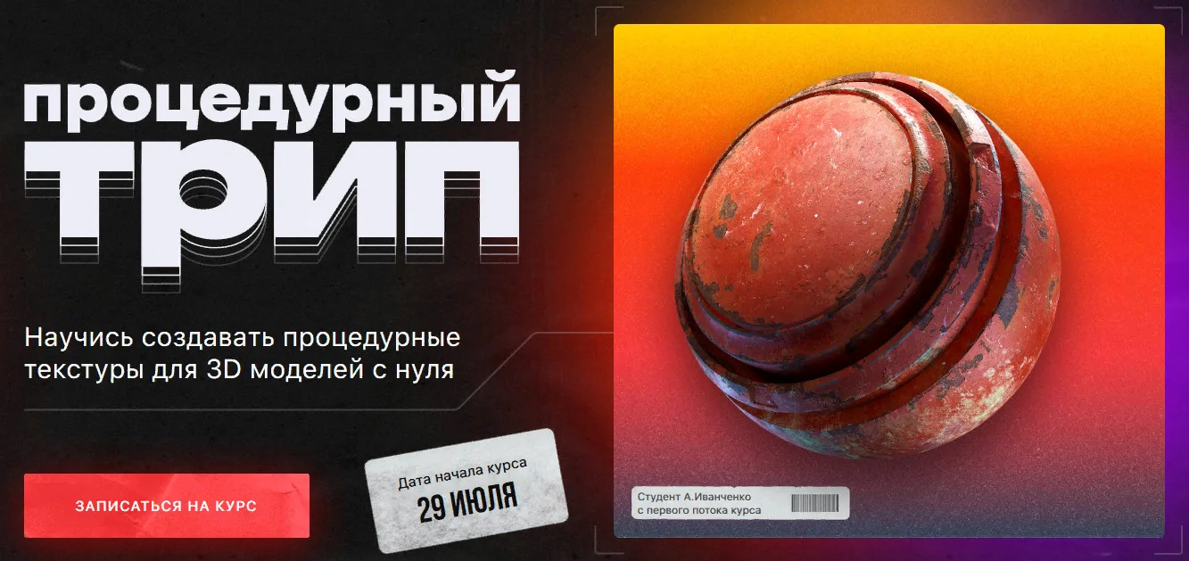 На этом курсе ты научишься создавать сочные и выразительные процедурные текстуры с нуля и настраивать их до мельчайших деталей.