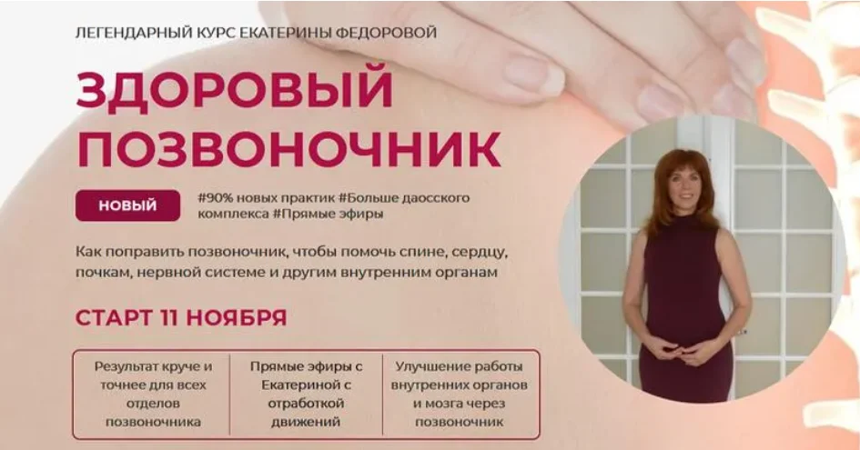 Курса «Здоровый позвоночник» не было уже 1,5 года. Это время Екатерина Федорова училась и осваивала новые приёмы и современное мощное направление "Пространственная медицина".