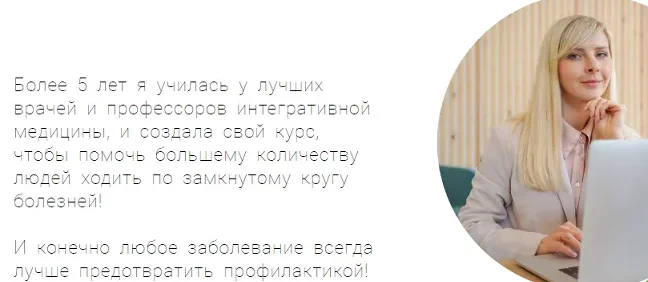 Более 5 лет я училась у лучших врачей и профессоров интегративной медицины, и создала свой курс, чтобы помочь большему количеству людей ходить по замкнутому кругу болезней!
