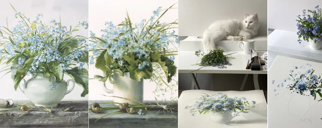 Этот мастер-класс по акварели будет посвящен живописи букета из мелких цветков небесно-голубого цвета - незабудок