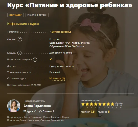 На курсе Елены Гордиенко «Питание и здоровье ребенка»: