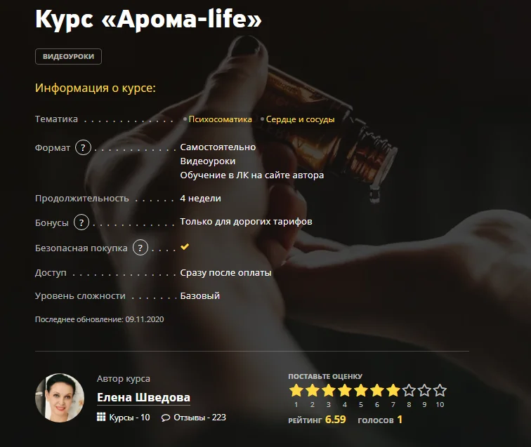 В этом курсе Елена Шведова расскажет и научит вас, как создать такую среду в доме, которая бы успокаивала и помогала восстановить силы после сложного трудового дня. На занятиях вы будете изучать комплексную трехуровневую систему восстановления вашего организма с помощью ароматерапии, которую автор давно практикует и советует своим пациентам.
