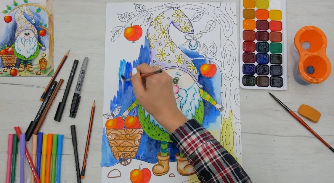 -акварельные краски (рекомендуем не менее 12 цветов);