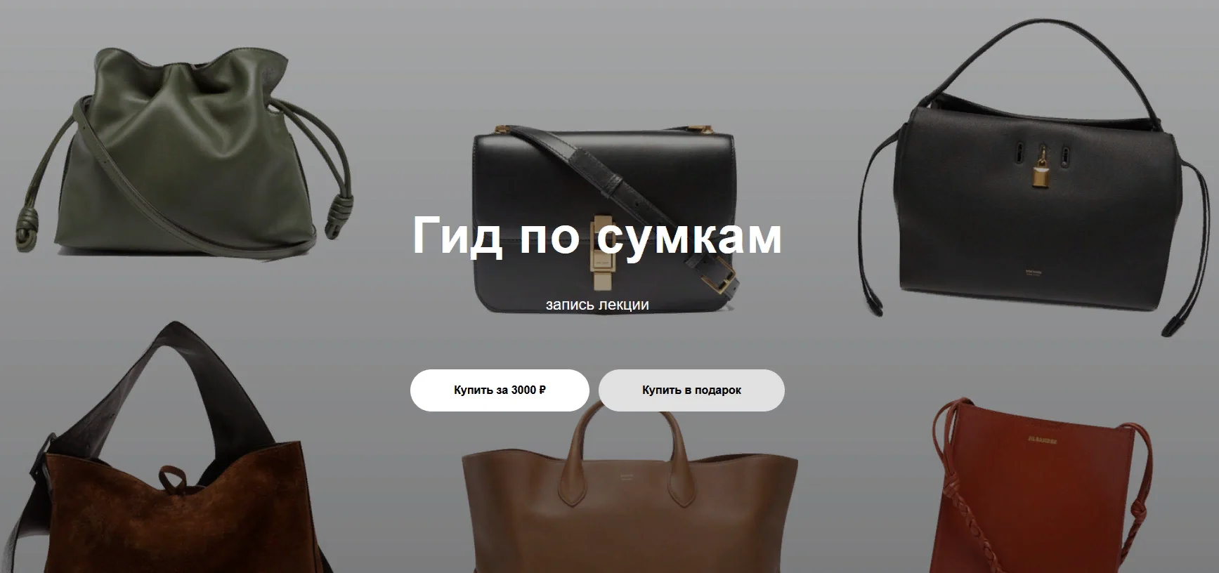 Гид по сумкам — обновленный вебинар, который научит вас правилам выбора сумок и поможет сориентироваться в разнообразии представленных сейчас моделей.